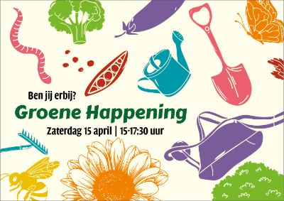 Kom jij zaterdag 15 april ook naar de Groene Happening? Voor iedereen die met Groen Moet Je Doen (GMJD) bezig is of andere acties om je buurt te vergroenen. Leuk als je stekjes en zaden meeneemt om te ruilen. Je kunt gratis je tuingereedschap laten slijpen, er zijn interessante flitspresentaties en ...
