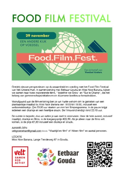 VELT Groene Hart organiseert op woensdag 29 november samen met Eetbaar Gouda en Miss Nice Banana het Food.Film.Festival.
